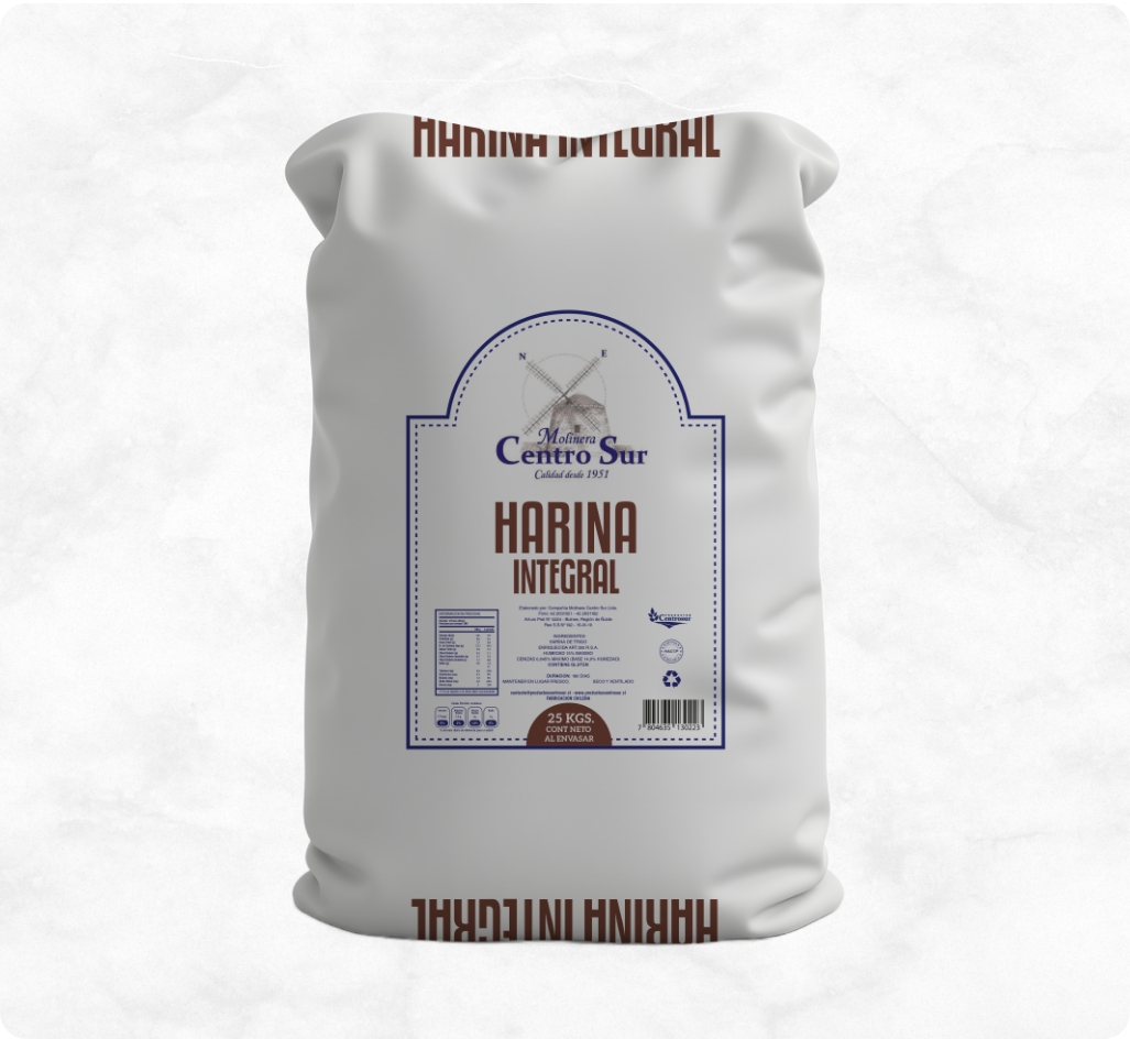 Harina de trigo 100% integral con excelente rendimiento en moldes y hallullas.